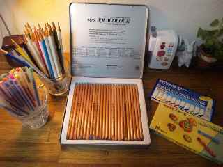 描いた後に水をつけると水彩画になる、水彩色鉛筆なのです