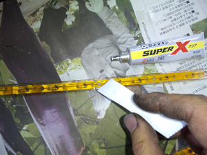 接着面の泥や油汚れをパーツクリーナーや洗剤でキレイにし、接着する面の両方にセメダインスーパーXを薄く均一に塗ります