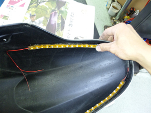今回は、ラバータイプのLEDランプを接着しました