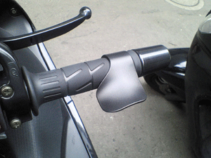 これをグリップに装着したら、グリップを握らなくてもアクセルが回せるんです。