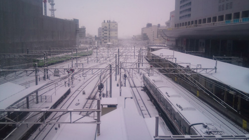 京都駅も雪で真っ白です。 (富山駅の写真ではありません)