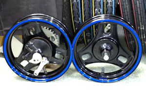 テープとホイールの貼り付け面に中性洗剤をスプレーして濡らします。