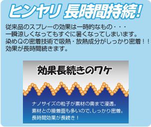 でしっかり熱を吸着し、長時間清涼感を体感出来るという優れものなんです! 真夏のライディング時、ウエアー、下着、バンダナ等の小物に吹きつけ