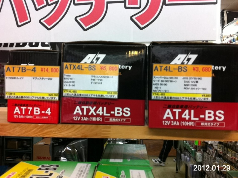 店頭に何種類か在庫していますので、「このバッテリーある?」でいいので