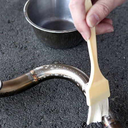 ・焼けを除去する以外の部分に、本液が付着しないように注意し、付属のハケで塗布します。