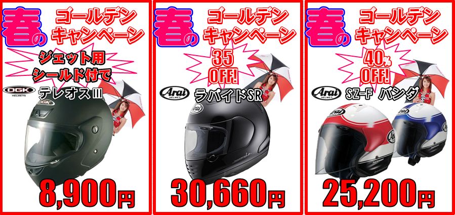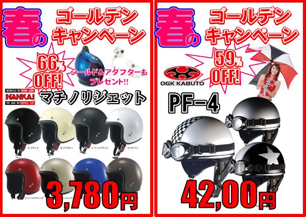 今回もヘルメットの特価品がたくさん有りますよ! 人気商品はすぐに完売になりますので