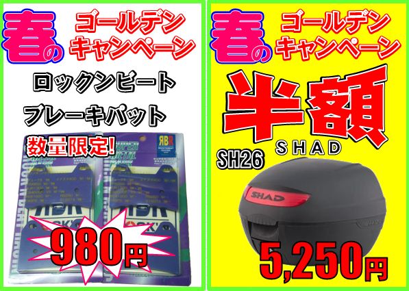 声をかけて下さい。SHADのリアボックスは半額!です 本当は 本日限定ですが、