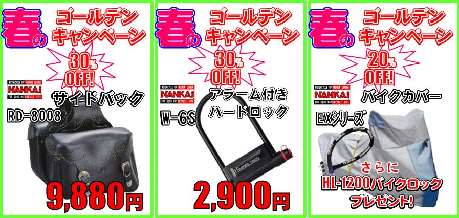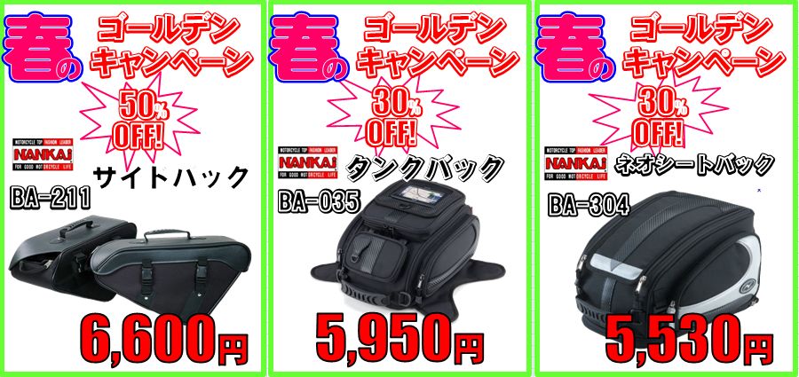 そして、ツーリングシーズンに欠かせないバック類もこの価格です!!