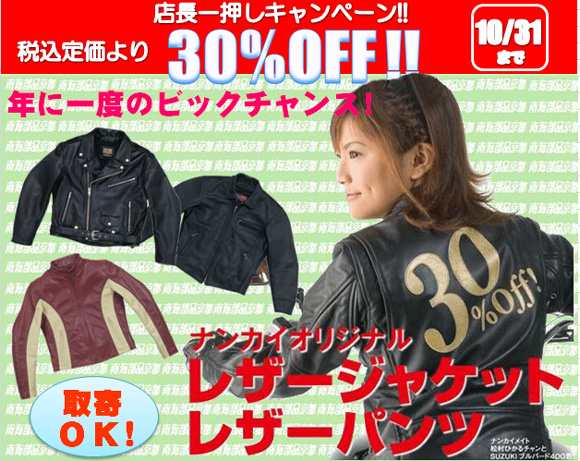 南海レザージャケット&レザーパンツをなんと定価の30% OFFで